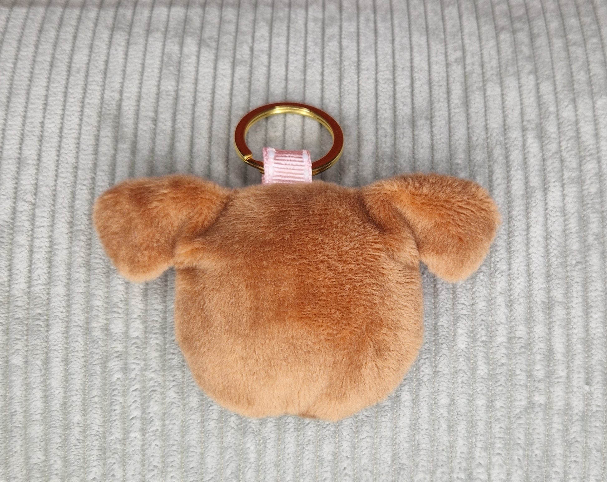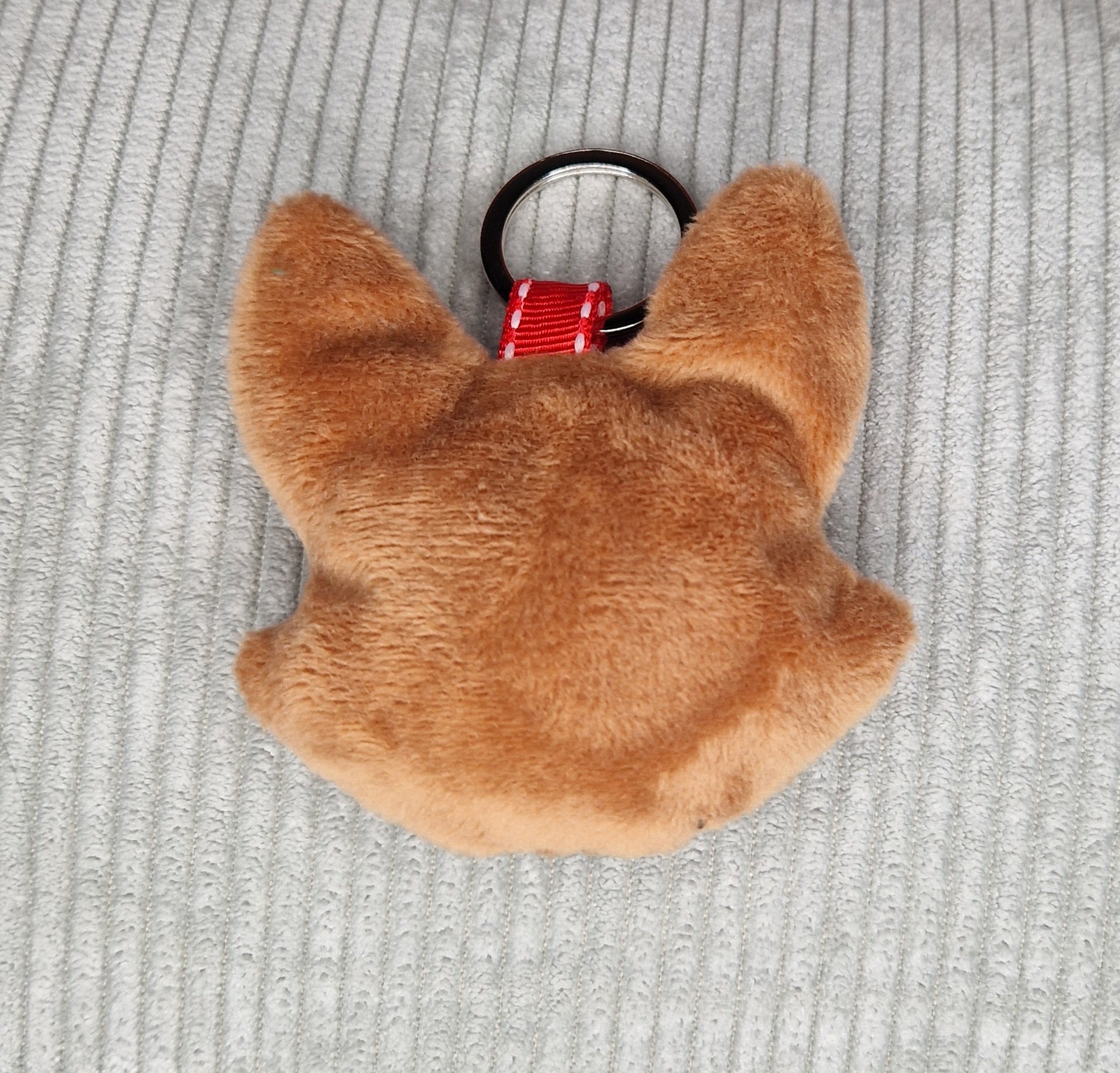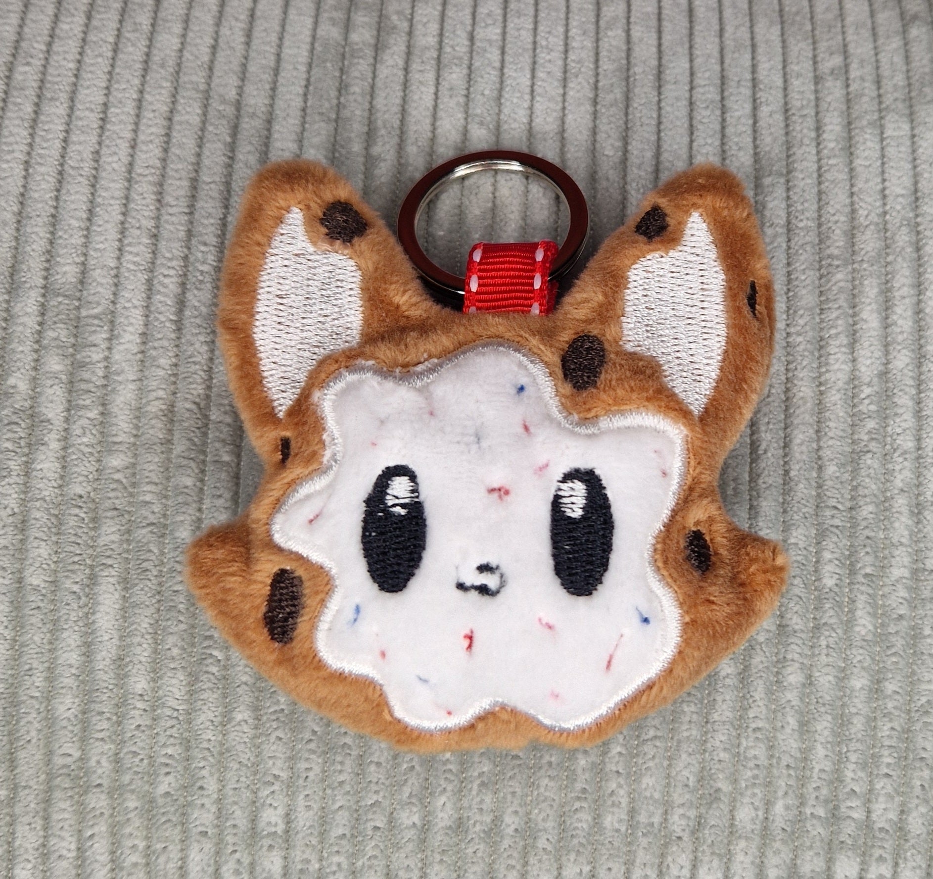 Süßer Schlüsselanhänger in Tierform und Cookieoptik (Vorderseite bestickt) auf kuscheligem Minky Stoff, wartet darauf adoptiert zu werden und für dich da zu sein.