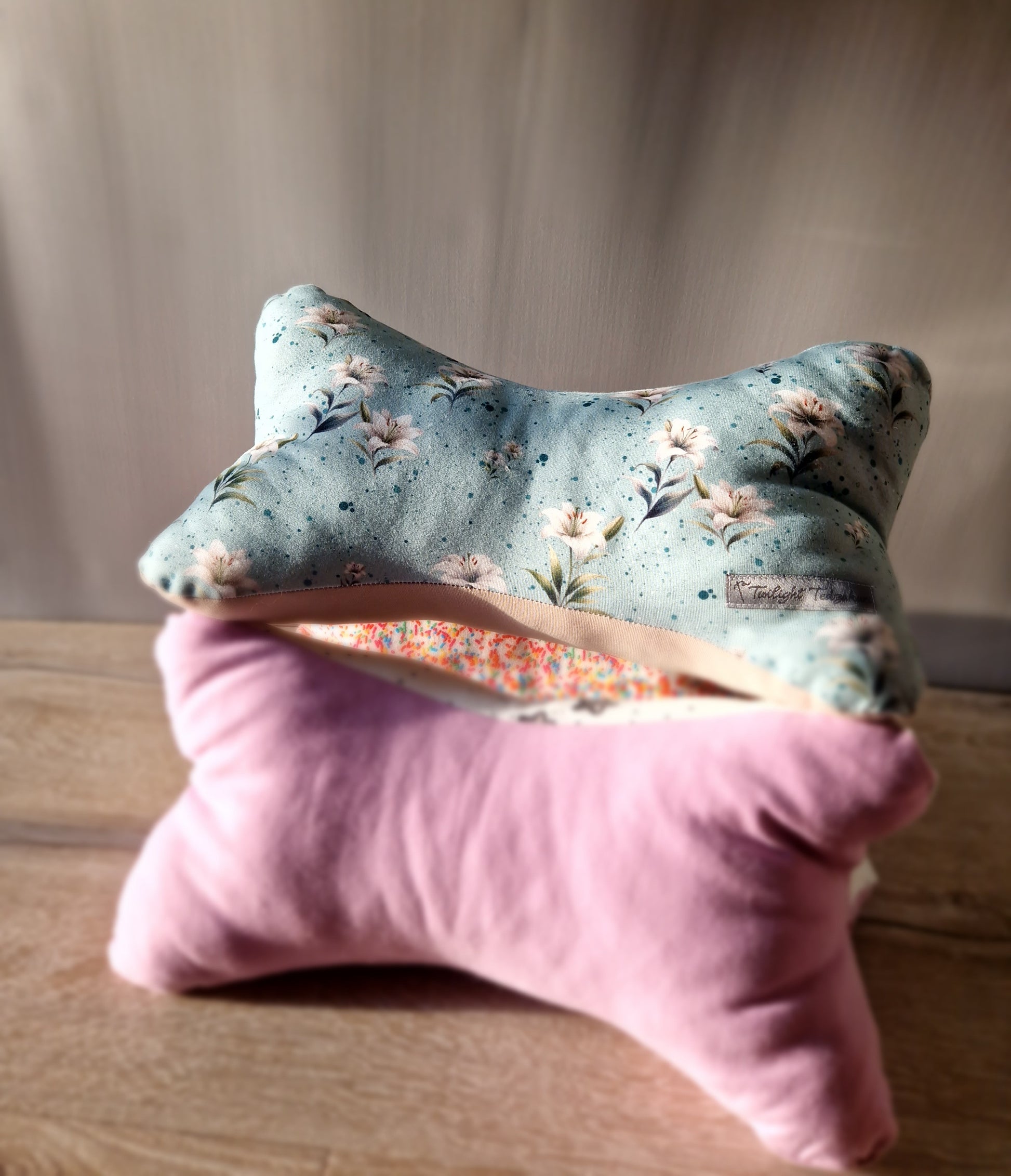 Super weicher Leseknochen, der dank seiner Knochenform als Nackenstütze, Buchstütze oder zur Entlastung des Rückens beim Lesen im Bett oder auf der Couch verwendet werden kann.