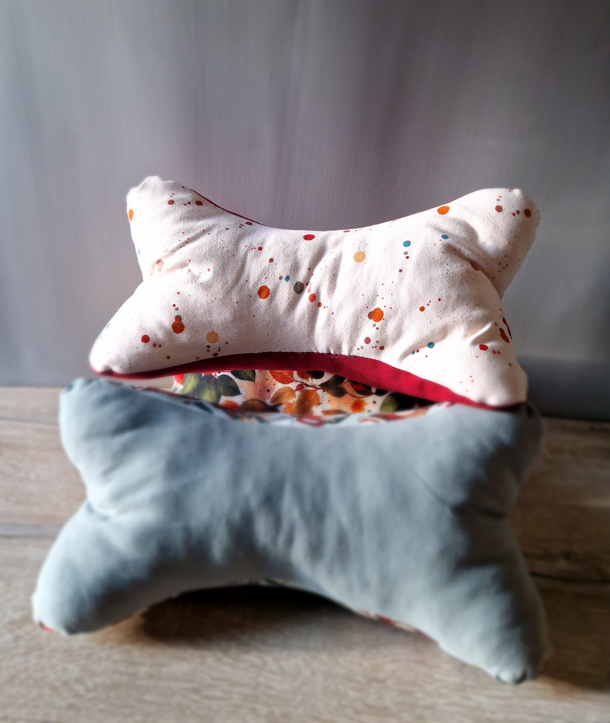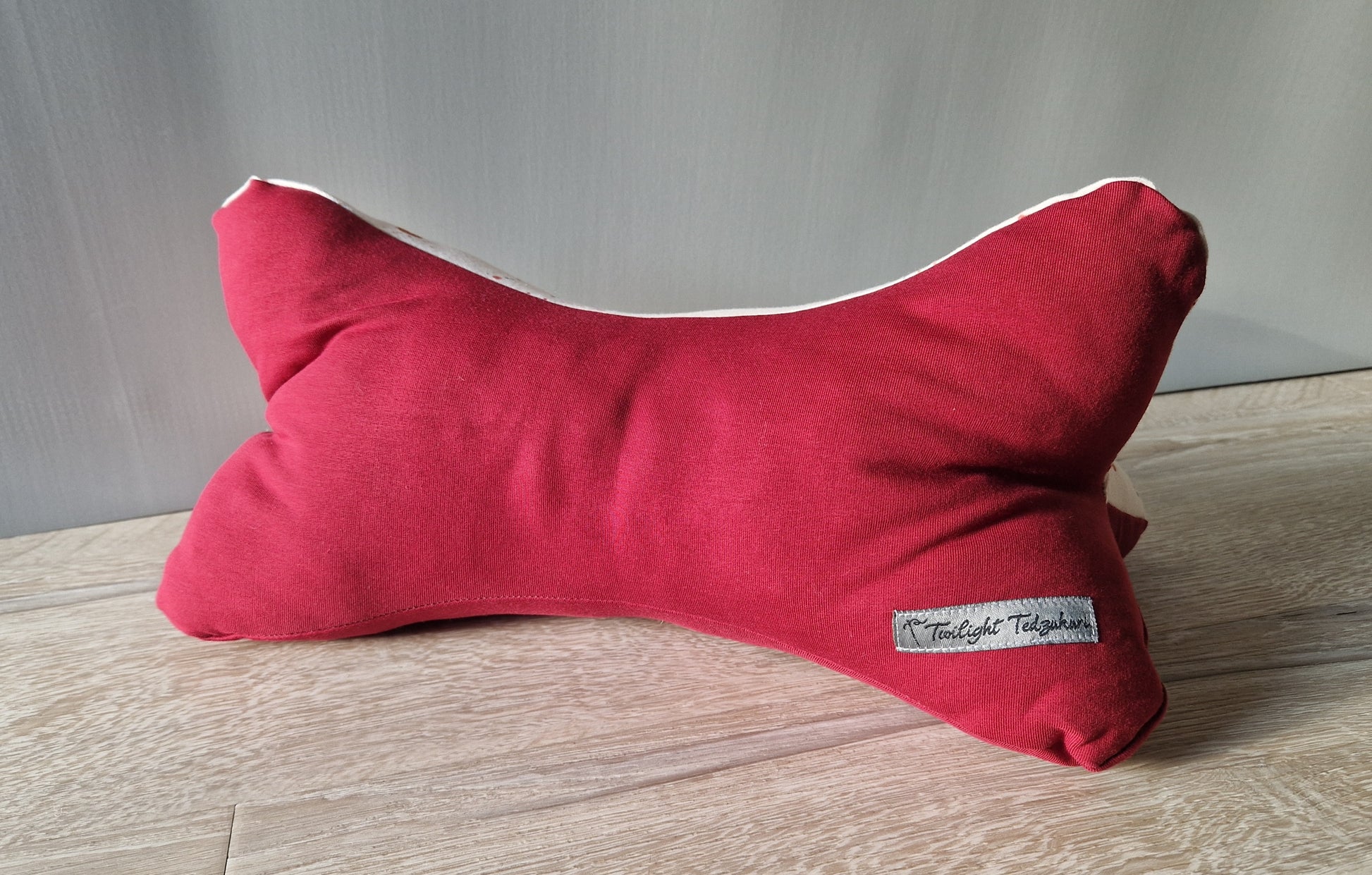 Super weicher Leseknochen, der dank seiner Knochenform als Nackenstütze, Buchstütze oder zur Entlastung des Rückens beim Lesen im Bett oder auf der Couch verwendet werden kann.